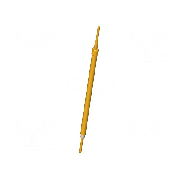 Igła testowa o długości 44,6 mm przeznaczona jest do zadań pomiarowych wymagających prądu znamionowego do 3A. Element został wykonany z miedzi berylowej (CuBe) z pozłacaną powierzchnią styku, co zapewnia stabilność połączeń w szerokim zakresie temperatur roboczych od -40°C do 80°C.