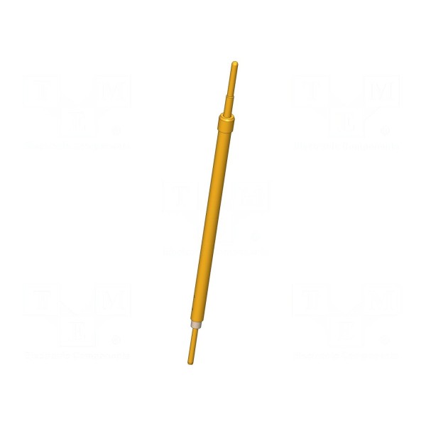 Igła testowa SKS-215 charakteryzuje się prądem znamionowym 3A oraz ugięciem sprężyny wynoszącym 5mm. Element wykonano z brązu berylowego (CuBe) z pozłacaną powierzchnią styku, co zapewnia stabilne połączenie elektryczne w aplikacjach pomiarowych. Końcówka o kształcie zaokrąglonym posiada średnicę 0,8mm.