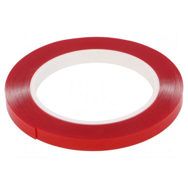 Taśma mocująca o szerokości 9 mm oraz długości 5,5 m została wykonana z nośnika w postaci spienionego akrylu o grubości 0,8 mm. Jest to produkt dwustronny z klejem akrylowym, charakteryzujący się przezroczystym wykończeniem. Taśma wykazuje wytrzymałość na ścinanie oraz zdolność do dopasowania się do powierzchni łączonych elementów.