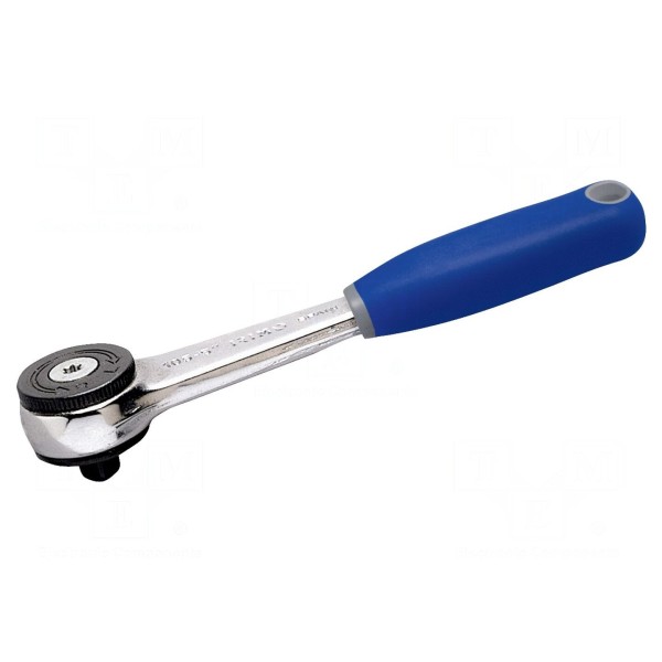 Klucz typu grzechotka przystosowany do obsługi nasadek z gniazdem 3/8". Narzędzie wyposażone jest w mechanizm zębaty o liczbie 72 zębów, co umożliwia pracę w ograniczonych przestrzeniach roboczych.