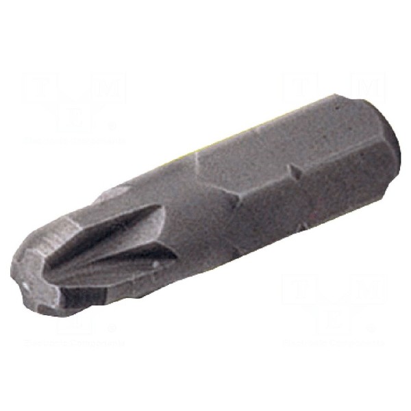 Końcówka wkrętakowa typu Pozidriv o rozmiarze PZ3 przystosowana jest do pracy z gniazdami 1/4". Element posiada rodzaj uchwytu C6,3mm, co zapewnia kompatybilność z odpowiednimi narzędziami napędowymi.