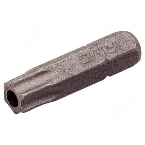 Element charakteryzuje się długością całkowitą wynoszącą 25mm. Opakowanie zbiorcze zawiera 10 sztuk końcówek wkrętakowych.