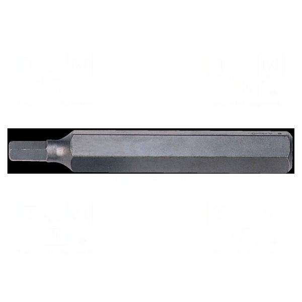 Końcówka wkrętakowa imbusowa o rozmiarze grota HEX 4mm przeznaczona jest do współpracy z narzędziami wyposażonymi w gniazdo sześciokątne o rozmiarze 10mm. Element charakteryzuje się całkowitą długością wynoszącą 75mm.