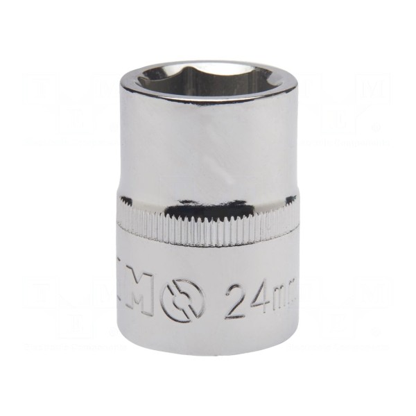 Nasadka 6-kątna typu HEX o rozmiarze 24 mm przeznaczona jest do pracy z narzędziami wyposażonymi w gniazdo 1/2". Całkowita długość elementu wynosi 38 mm.