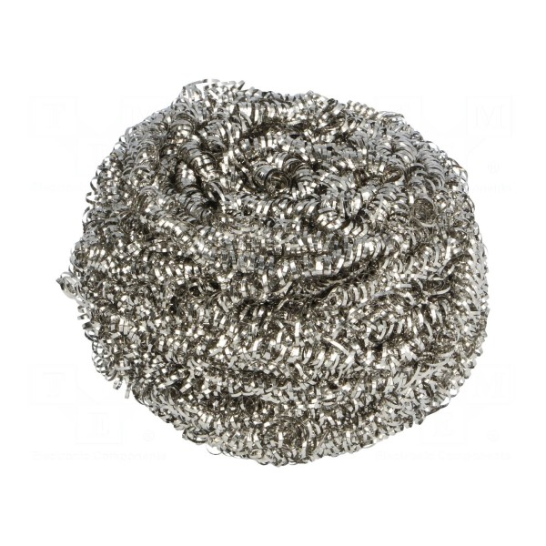 Konstrukcja akcesorium umożliwia stabilne umieszczenie w dedykowanym gnieździe podstawki. Zastosowanie wiórków metalowych pozwala na efektywne czyszczenie bez konieczności zwilżania gąbki wodą, co ogranicza ryzyko gwałtownego wychłodzenia temperatury grota podczas pracy.