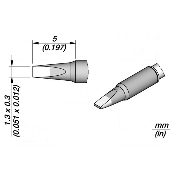 Grot o kształcie wkrętaka charakteryzuje się wymiarami końcówki roboczej 1,3x0,3mm. Element posiada zintegrowaną grzałkę, co pozwala na bezpośrednie przekazywanie ciepła do punktu lutowniczego.