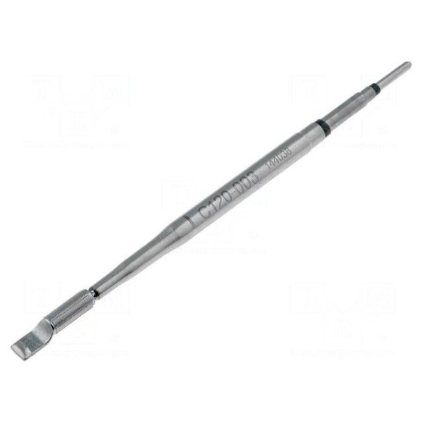 Grot przeznaczony jest do pracy z gorącymi mikroszczypiecami oraz stacjami lutowniczymi. Element charakteryzuje się kształtem łopatki o szerokości 3 mm, co umożliwia precyzyjne operowanie podczas procesów lutowniczych.