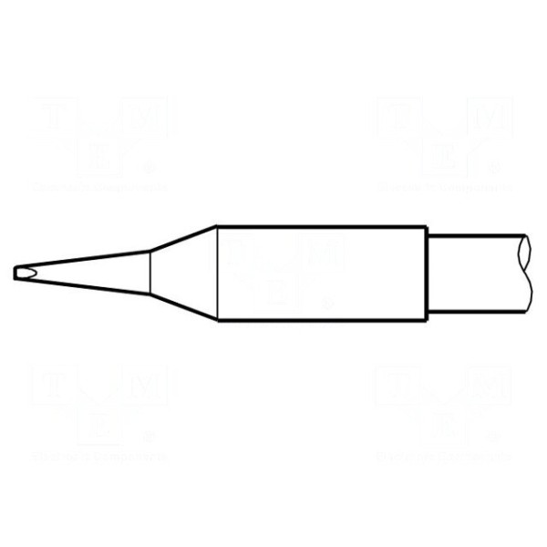 Grot typu wkrętak o wymiarach 0,6x0,3mm został wyposażony w zintegrowaną grzałkę. Element charakteryzuje się konstrukcją typu longlife, która wpływa na jego eksploatację podczas prac lutowniczych.