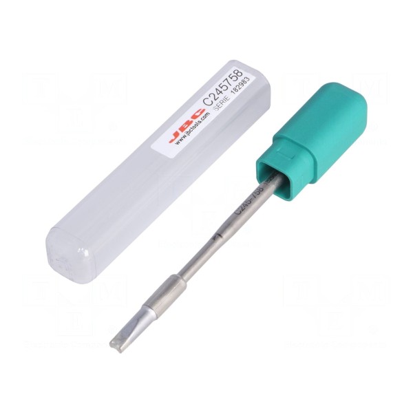 Produkt znajduje zastosowanie w lutownicach oraz stacjach lutowniczych marki JBC. Zintegrowana konstrukcja z grzałką zapewnia sprawne przekazywanie ciepła podczas procesów lutowniczych.