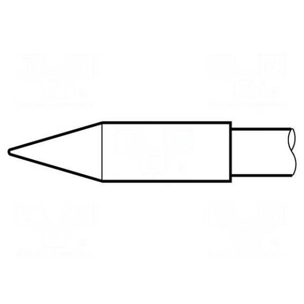 Grot lutowniczy o kształcie stożka charakteryzuje się wymiarem końcówki wynoszącym 0,6mm. Element ten wyposażony jest w zintegrowaną grzałkę, co pozwala na sprawne przekazywanie ciepła bezpośrednio do punktu lutowniczego.