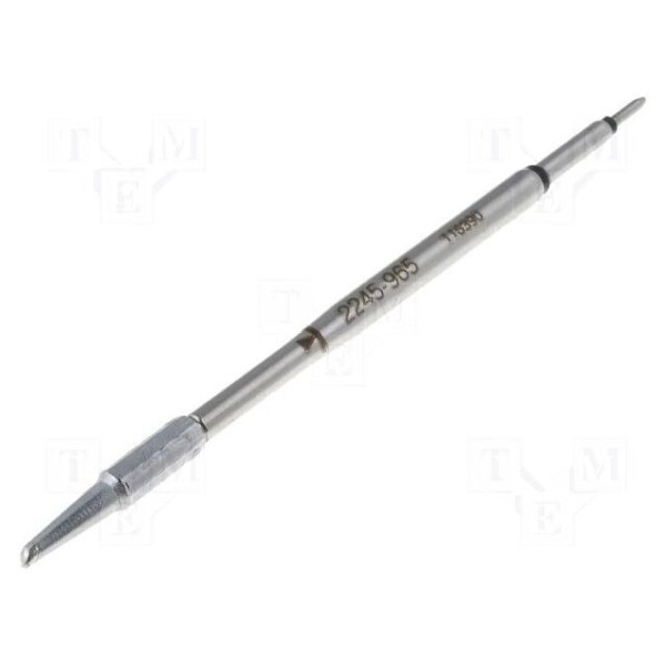 Grot lutowniczy zintegrowany z grzałką przeznaczony jest do prac z wykorzystaniem stacji lutowniczych oraz urządzeń do rozlutowywania. Kształt końcówki typu minifala o szerokości 1,9mm umożliwia precyzyjne prowadzenie spoiwa na polach lutowniczych.