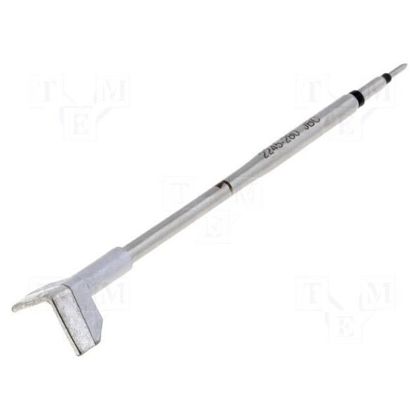 Grot przeznaczony jest do współpracy z gorącymi szczypcami wyposażonymi w grzałkę. Element charakteryzuje się zagiętym kształtem, który umożliwia precyzyjną pracę w warunkach ograniczonego dostępu.