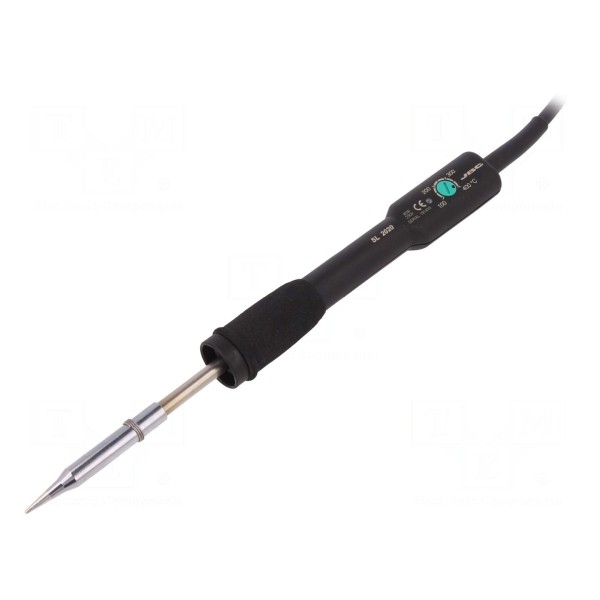 Lutownica grzałkowa JBC TOOLS SL2020 o mocy 40W jest zasilana napięciem 230V i przystosowana do pracy wtykiem typu europejskiego. Urządzenie oferuje analogową regulację temperatury grota w zakresie od 100°C do 400°C, co odbywa się za pomocą pokrętła. Konstrukcja narzędzia zapewnia stabilizację temperatury oraz ergonomiczny uchwyt ułatwiający obsługę podczas prac lutowniczych.