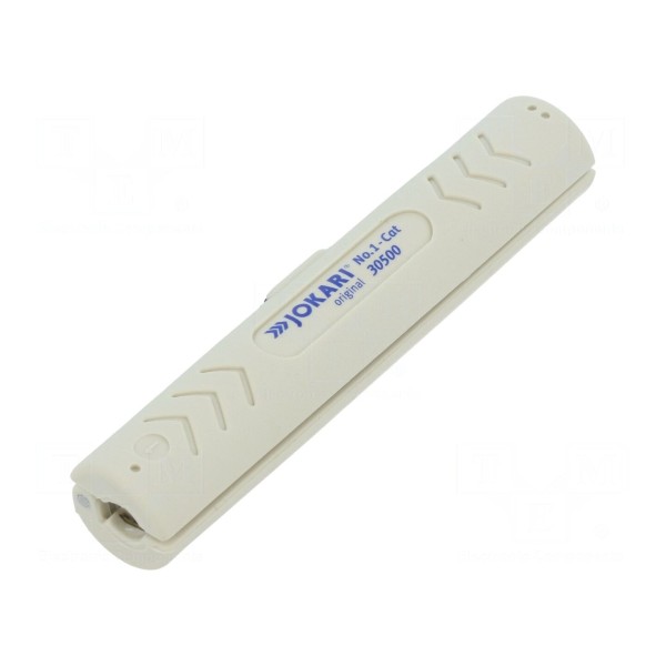 Ściągacz izolacji JOKARI 30500 to narzędzie przeznaczone do pracy z przewodami okrągłymi. Konstrukcja urządzenia umożliwia obsługę kabli o średnicy zewnętrznej w zakresie od 4,5 mm do 10 mm.