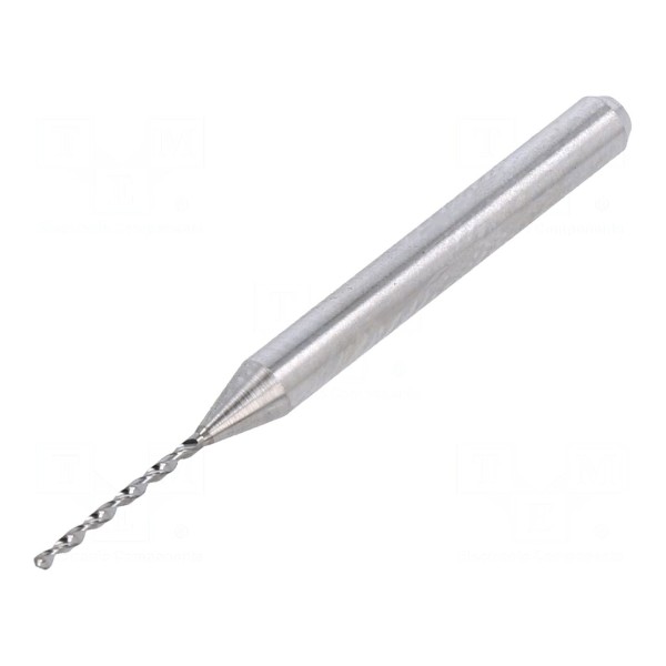 Wiertło wykonane z węglika wolframu o średnicy ostrza 0,8 mm. Całkowita długość elementu wynosi 38,2 mm, przy czym długość części roboczej osiąga 10 mm.