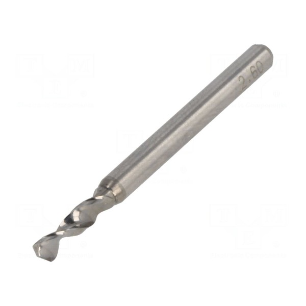 Wiertło przeznaczone jest do obróbki materiałów stosowanych w produkcji płytek drukowanych. Narzędzie o średnicy roboczej 2,6 mm wykonano z węglika wolframu, co wpływa na charakterystykę jego pracy przy wierceniu w laminatach.
