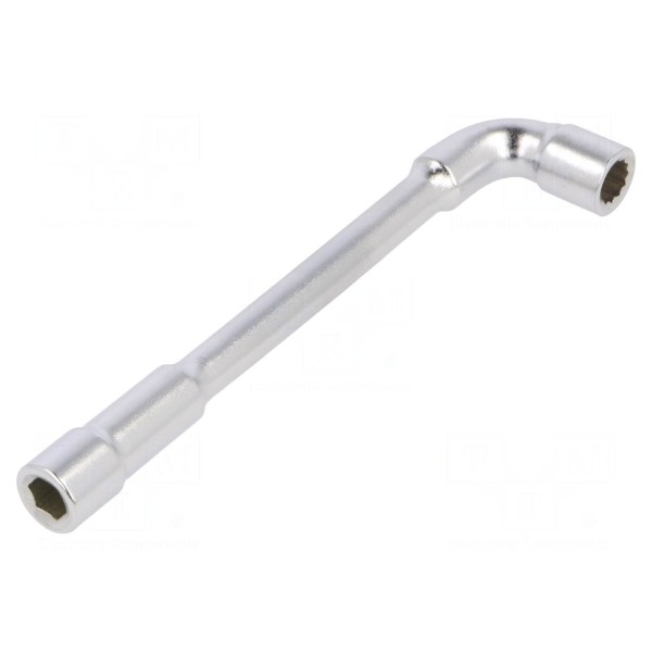 Konstrukcja klucza charakteryzuje się chromowaną powierzchnią, która zwiększa odporność na czynniki zewnętrzne. Dzięki swojej budowie narzędzie umożliwia dostęp do śrub w miejscach o ograniczonym polu manewru.