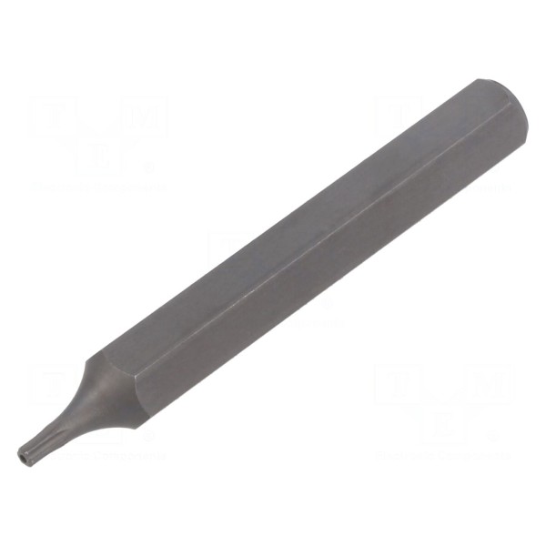 Końcówka wkrętakowa typu Torx z zabezpieczeniem w rozmiarze T10H przeznaczona jest do współpracy z narzędziami wyposażonymi w uchwyt sześciokątny o rozmiarze 10mm. Element o łącznej długości 80mm został zaprojektowany do prac wymagających użycia wkrętów z gniazdem typu Torx z otworem prowadzącym.