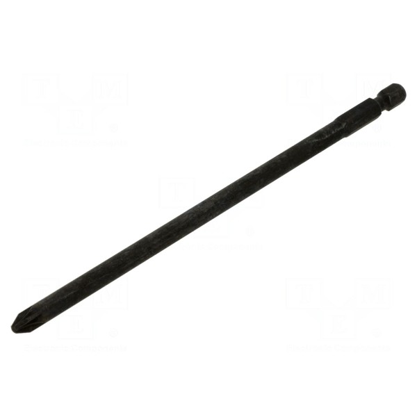 Końcówka wkrętakowa z grotem typu Pozidriv w rozmiarze PZ2 przeznaczona jest do współpracy z narzędziami ręcznymi oraz elektronarzędziami wyposażonymi w gniazdo 1/4". Element charakteryzuje się długością całkowitą wynoszącą 150 mm.