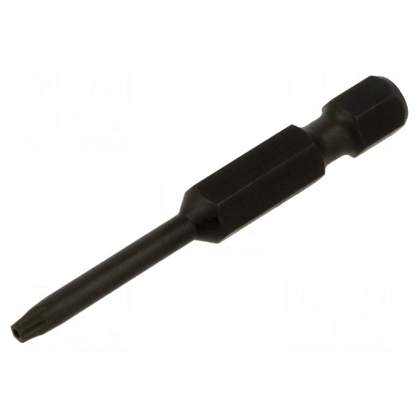 Całkowita długość narzędzia wynosi 50mm. Produkt wykonany jest zgodnie z wymiarami umożliwiającymi bezpośredni montaż w standardowych uchwytach bitów.