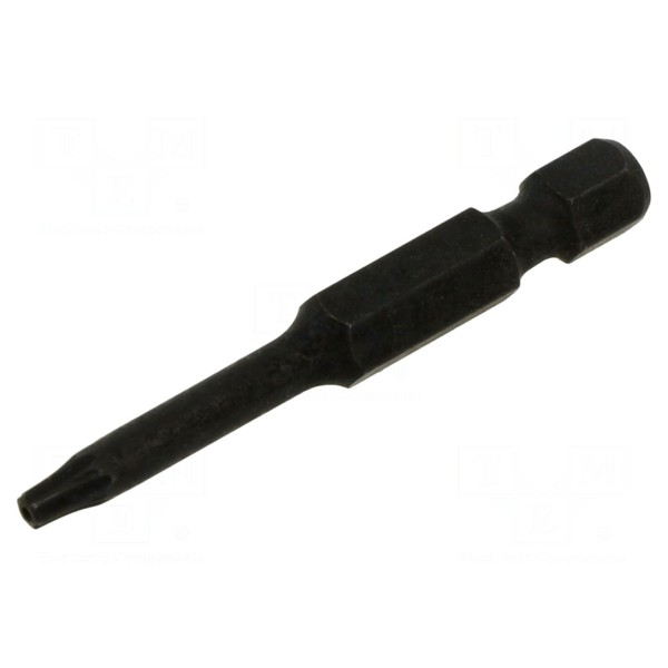 Całkowita długość elementu wynosi 50mm. Konstrukcja końcówki zapewnia dopasowanie do gniazd typu Torx, umożliwiając pracę z odpowiednimi śrubami i wkrętami w określonym rozmiarze.