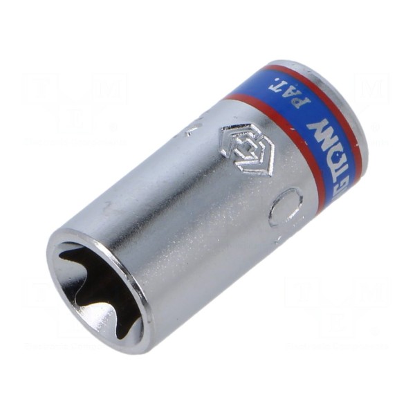 Nasadka KING TONY o profilu Torx E10 jest przeznaczona do prac z połączeniami gwintowymi typu zewnętrznego. Narzędzie zostało wykonane w wersji krótkiej o całkowitej długości 24 mm.