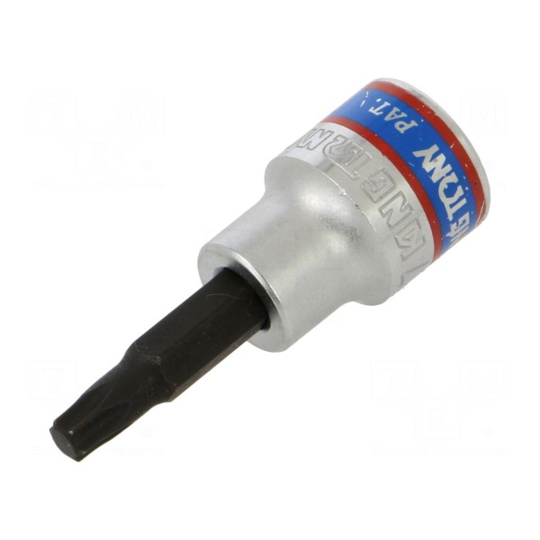 Konstrukcja nasadki zapewnia dopasowanie do śrub o profilu Torx, umożliwiając efektywną pracę w połączeniach mechanicznych. Produkt wykonany zgodnie ze standardami dla nasadek typu nasadowego.