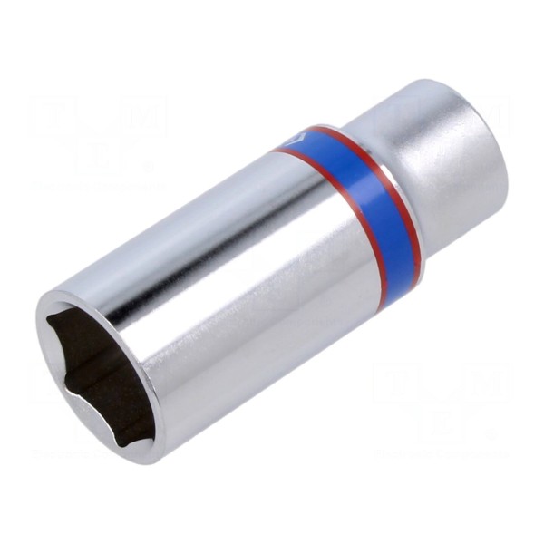 Narzędzie zostało wykonane ze stali chromowo-wanadowej. Parametry wymiarowe zapewniają współpracę z odpowiednimi kluczami posiadającymi zabierak 3/8".