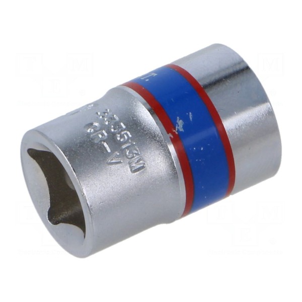 Nasadka o profilu 6-kątnym przeznaczona jest do współpracy z pokrętłami wyposażonymi w zabierak 3/8". Narzędzie posiada rozmiar gniazda roboczego wynoszący 13mm.