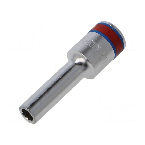Nasadka KING TONY o długości 77 mm to element narzędziowy typu 12-kątnego. Konstrukcja została wykonana ze stali chromowo-wanadowej.