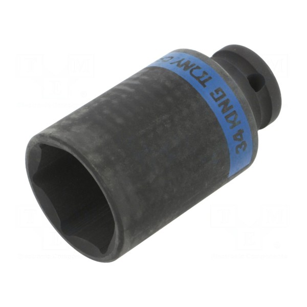 Nasadka udarowa 6-kątna typu długiego przeznaczona jest do współpracy z narzędziami o napędzie 1/2". Rozmiar gniazda roboczego wynosi HEX 34mm, a całkowita długość elementu to 80mm.