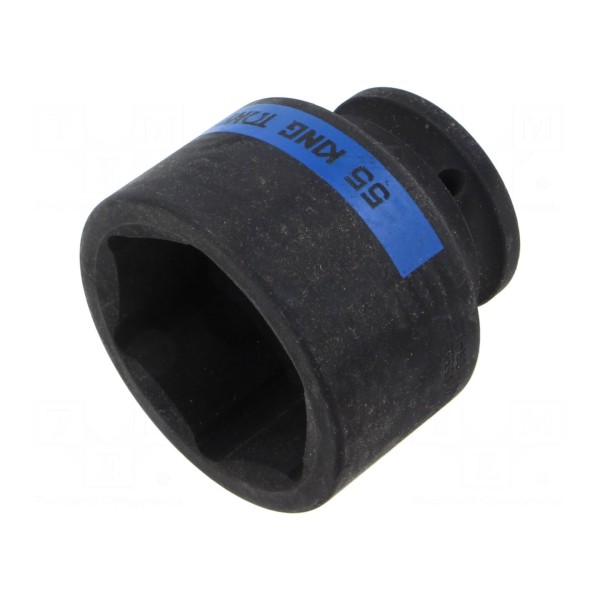 Nasadka udarowa o profilu 6-kątnym przeznaczona jest do współpracy z narzędziami posiadającymi zabierak 3/4". Element charakteryzuje się rozmiarem gniazda 55 mm oraz długością całkowitą wynoszącą 70 mm.