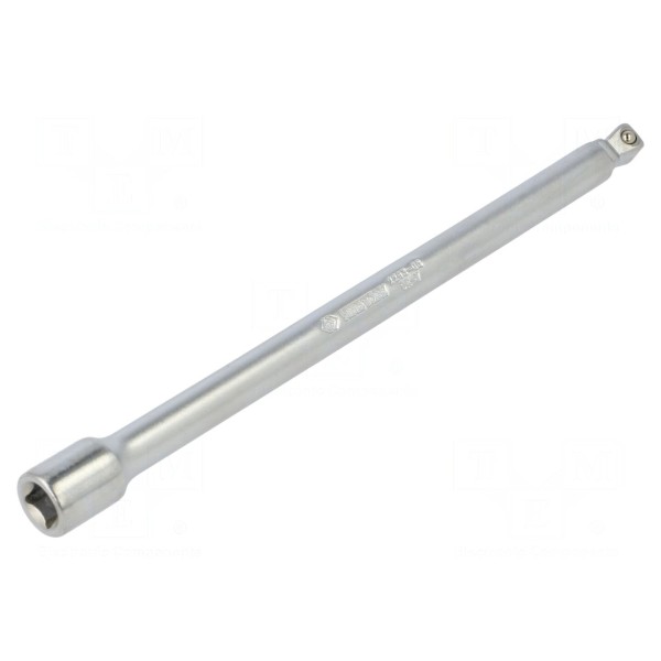 Przedłużka KING TONY o rozmiarze gniazda uchwytu 1/4" służy do zwiększania zasięgu pracy narzędzi ręcznych. Element posiada długość 0,15m, co umożliwia dostęp do śrub i nakrętek znajdujących się w głębokich lub trudno dostępnych miejscach.