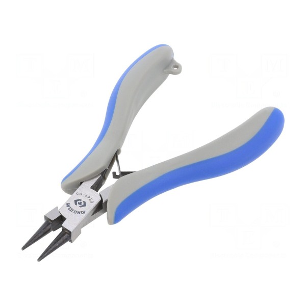 Szczypce miniaturowe typu półokrągłego to narzędzie o całkowitej długości 128 mm. Konstrukcja pozwala na precyzyjną pracę w miejscach o ograniczonej przestrzeni roboczej.