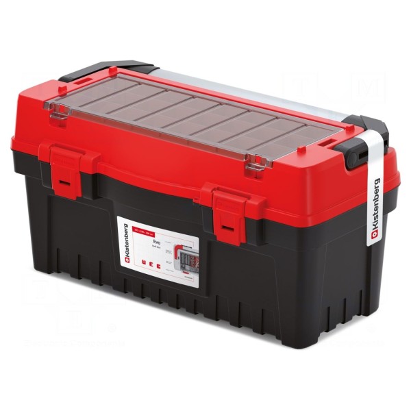 Skrzynka narzędziowa EVO60 wykonana jest z polimeru w kolorystyce czarno-czerwonej. Konstrukcja zapewnia udźwig do 25kg, co pozwala na bezpieczne przechowywanie i transport cięższych narzędzi ręcznych oraz akcesoriów warsztatowych.