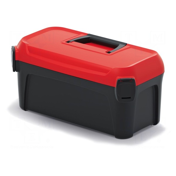 Skrzynka narzędziowa o wymiarach zewnętrznych 500x251x243mm przeznaczona jest do przechowywania oraz transportu narzędzi. Konstrukcja w kolorze czarno-czerwonym charakteryzuje się dopuszczalnym udźwigiem wynoszącym 12kg.