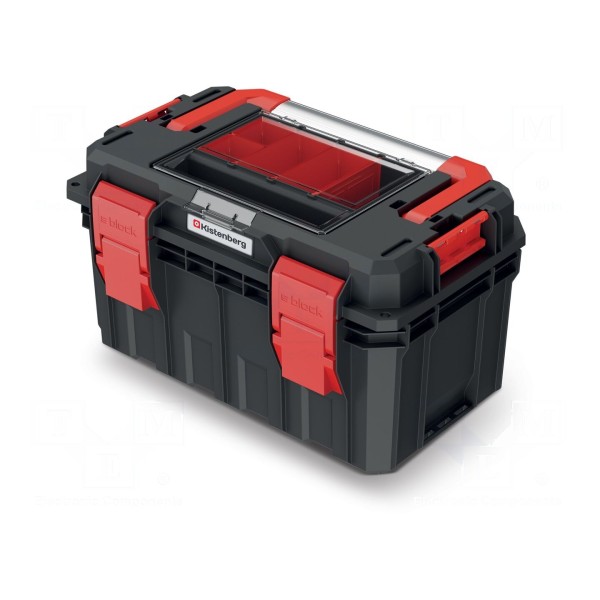 Konstrukcja o wymiarach zewnętrznych 450x280x264mm została wyposażona w rączkę do noszenia oraz trwałe zapięcia wykonane z ABS. W pokrywie skrzynki znajduje się zintegrowany organizer, umożliwiający segregację drobnych akcesoriów warsztatowych.