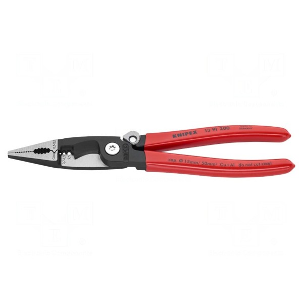 Szczypce uniwersalne o długości 200mm pełnią funkcję narzędzia przeznaczonego do cięcia. Model ten został wyposażony w dodatkowe właściwości, które umożliwiają zaciskanie końcówek tulejkowych w zakresie przekrojów od 0,5mm² do 2,5mm².