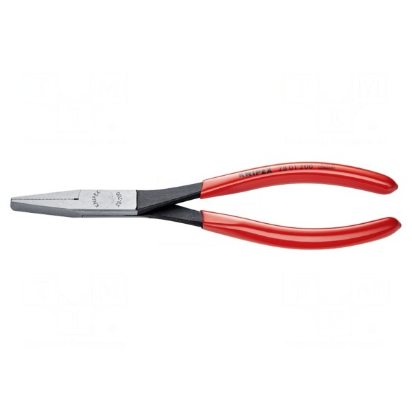 Szczypce płaskie KNIPEX o długości całkowitej 200mm to narzędzie przeznaczone do prac wymagających chwytania i precyzyjnego pozycjonowania elementów. Konstrukcja narzędzia pozwala na pewny chwyt przedmiotów w miejscach o ograniczonej przestrzeni.