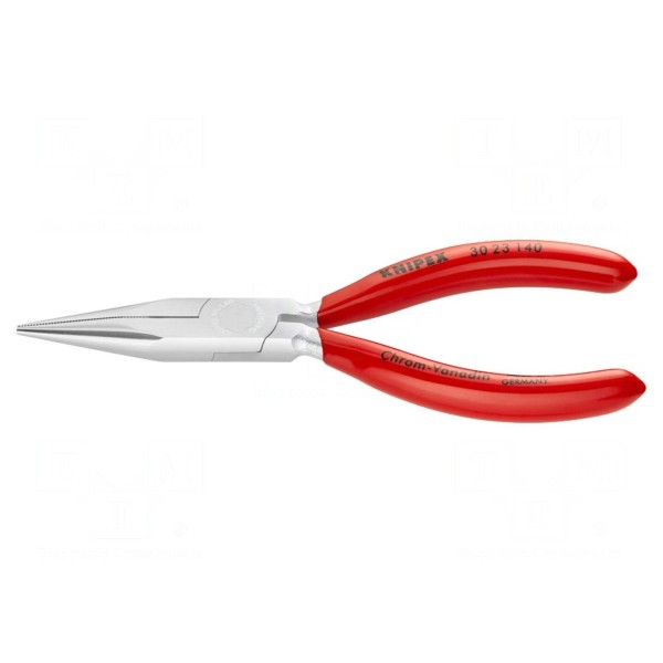 Szczypce KNIPEX 30 23 140 to narzędzie typu szczypce o płaskich i wydłużonych końcówkach. Konstrukcja pozwala na dostęp do trudno dostępnych miejsc oraz precyzyjne chwytanie przedmiotów.