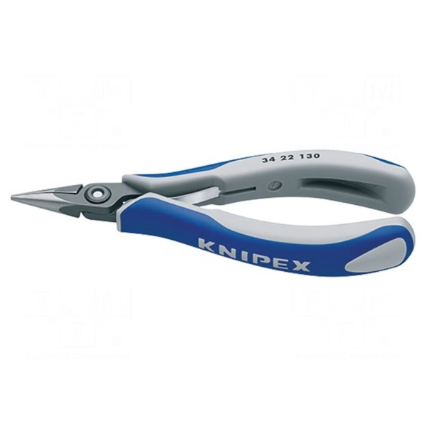 Szczypce półokrągłe marki Knipex wykonane są ze stali. Narzędzie o długości 130mm zostało wyposażone w rękojeści dwukomponentowe, które zapewniają chwyt podczas użytkowania. Konstrukcja szczypiec jest zgodna z normą DIN ISO 9655.
