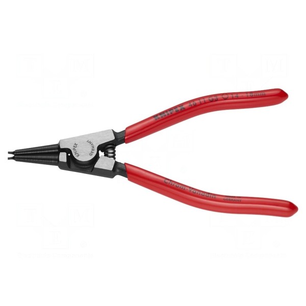 Szczypce typu prostego przeznaczone są do obsługi pierścieni osadczych zewnętrznych bez otworów. Narzędzie obsługuje elementy o średnicy w zakresie od 14 do 18 mm.