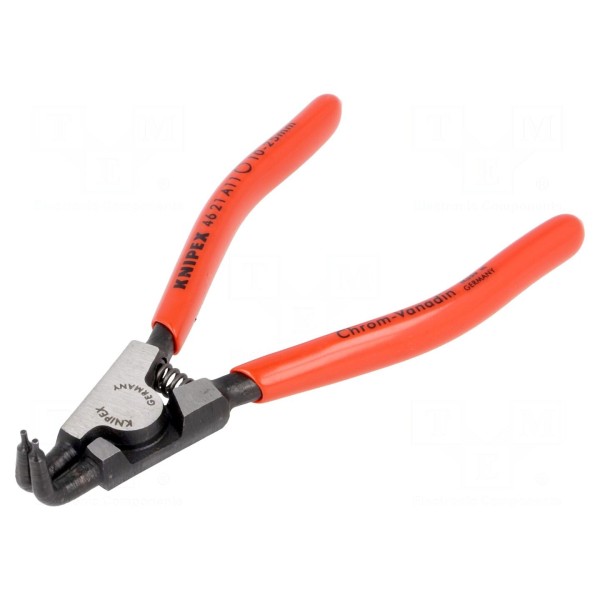 Szczypce KNIPEX 4621A11 służą do obsługi pierścieni osadczych typu zewnętrznego. Narzędzie przeznaczone jest do pracy z pierścieniami o średnicy w zakresie 10–25mm.