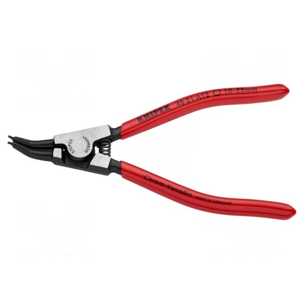 Szczypce do pierścieni osadczych zewnętrznych KNIPEX 4631A12 przeznaczone są do montażu i demontażu pierścieni na wałkach w zakresie średnic od 10 mm do 25 mm. Narzędzie posiada konstrukcję kątową, która ułatwia dostęp do pierścieni w miejscach o ograniczonej przestrzeni roboczej.