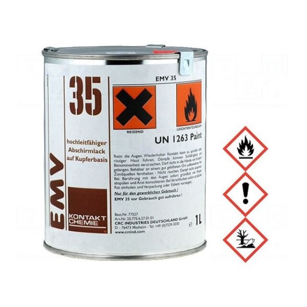 Preparat EMI 35 to powłoka ekranująca w formie płynu o brązowym zabarwieniu, wytworzona na bazie miedzi. Służy do tworzenia przewodzącej powierzchni, co znajduje zastosowanie przy ekranowaniu obudów urządzeń oraz różnego rodzaju sprzętu elektronicznego. Produkt charakteryzuje się gęstością 0,9 g/cm³ w temperaturze 20°C.