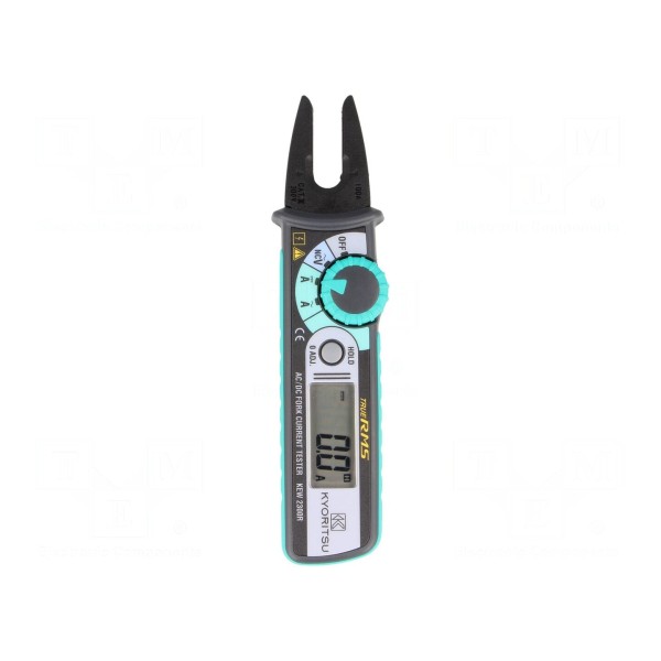 Cyfrowy miernik cęgowy KYORITSU KEW 2300R umożliwia pomiar prądu stałego (DC) oraz zmiennego (AC) w zakresie od 100mA do 100A. Przyrząd obsługuje pomiar rzeczywistej wartości skutecznej True RMS dla prądu zmiennego oraz oferuje dokładność pomiaru na poziomie ±(2% + 5 digit). Urządzenie pozwala na pracę z przewodami o maksymalnej średnicy 10mm, a pomiar wartości prądu odbywa się przy pomocy otwartych cęgów.