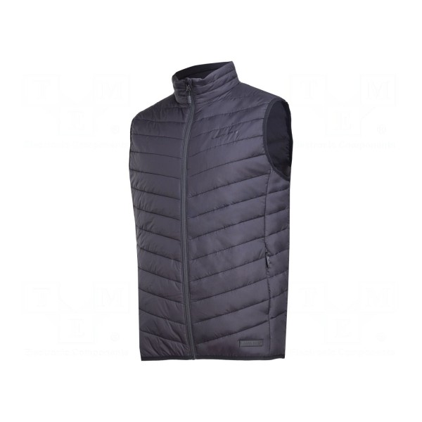 Bezrękawnik został wykonany z poliestru oraz tkaniny nylonowej o gramaturze 38g/m². Konstrukcja produktu obejmuje ocieplenie, co wpływa na izolację termiczną użytkownika podczas pracy w niższych temperaturach.