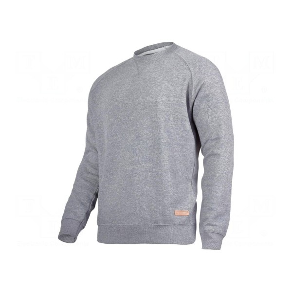 Bluza robocza wykonana z połączenia bawełny, poliestru oraz wiskozy charakteryzuje się gramaturą materiału wynoszącą 320g/m². Model w kolorze szarym dostępny jest w rozmiarze S i posiada konstrukcję bez kaptura.