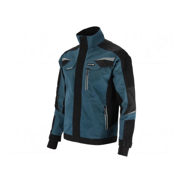 Bluza typu slim-fit została wykonana z połączenia bawełny oraz poliestru o gramaturze 270g/m². Konstrukcja produktu jest rozpinana, co ułatwia codzienne użytkowanie w różnych warunkach roboczych.