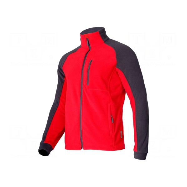 Bluza polarowa w rozmiarze XXL wykonana z poliestru o gramaturze 290g/m². Produkt utrzymany jest w kolorystyce czerwono-szarej i posiada konstrukcję bez kaptura.